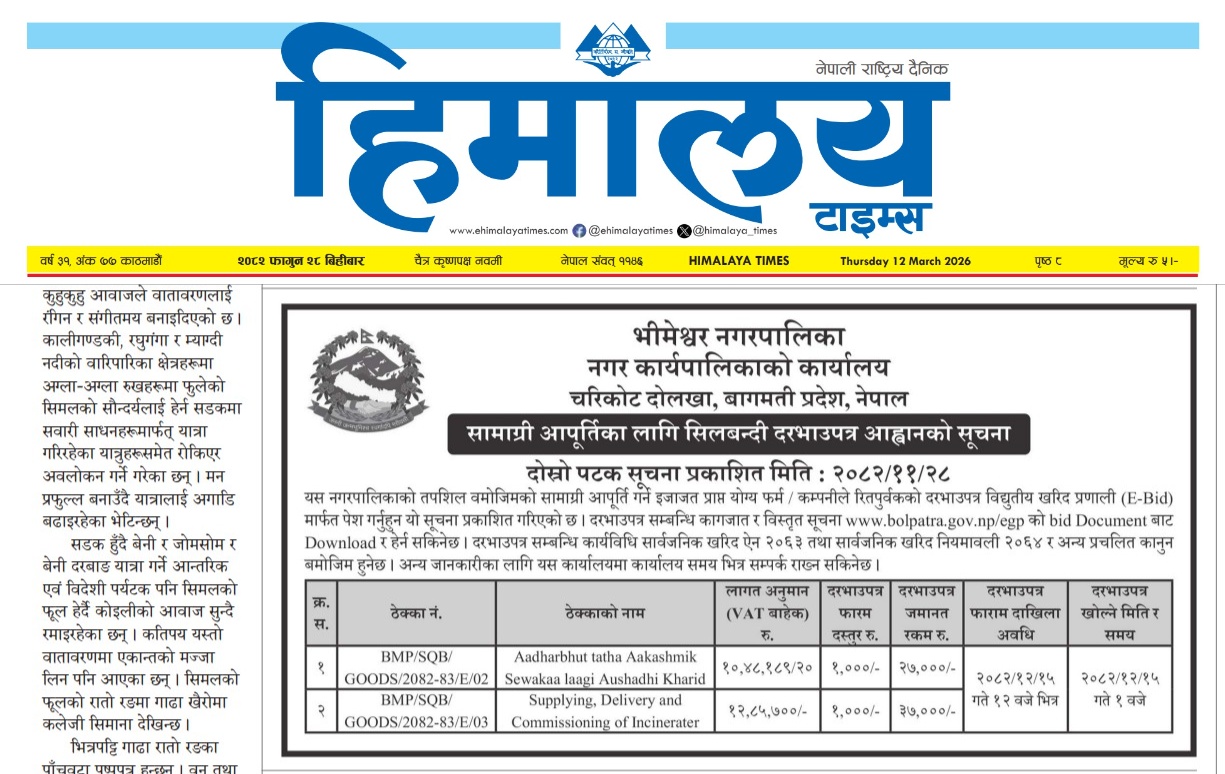 » सामाग्री आपूर्तिका लागि सिलबन्दी दरभाउपत्र आह्वानको सूचना । (औषधि र इन्सिनेरेटर)