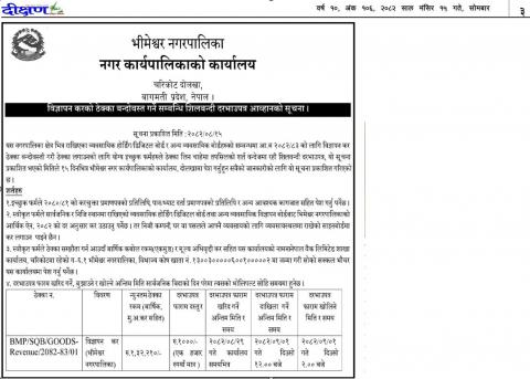 विज्ञापन करको ठेक्का बन्दोबस्त गर्ने सम्बन्धि शिलबन्दी दरभाउपत्र आव्हानको सूचना ।