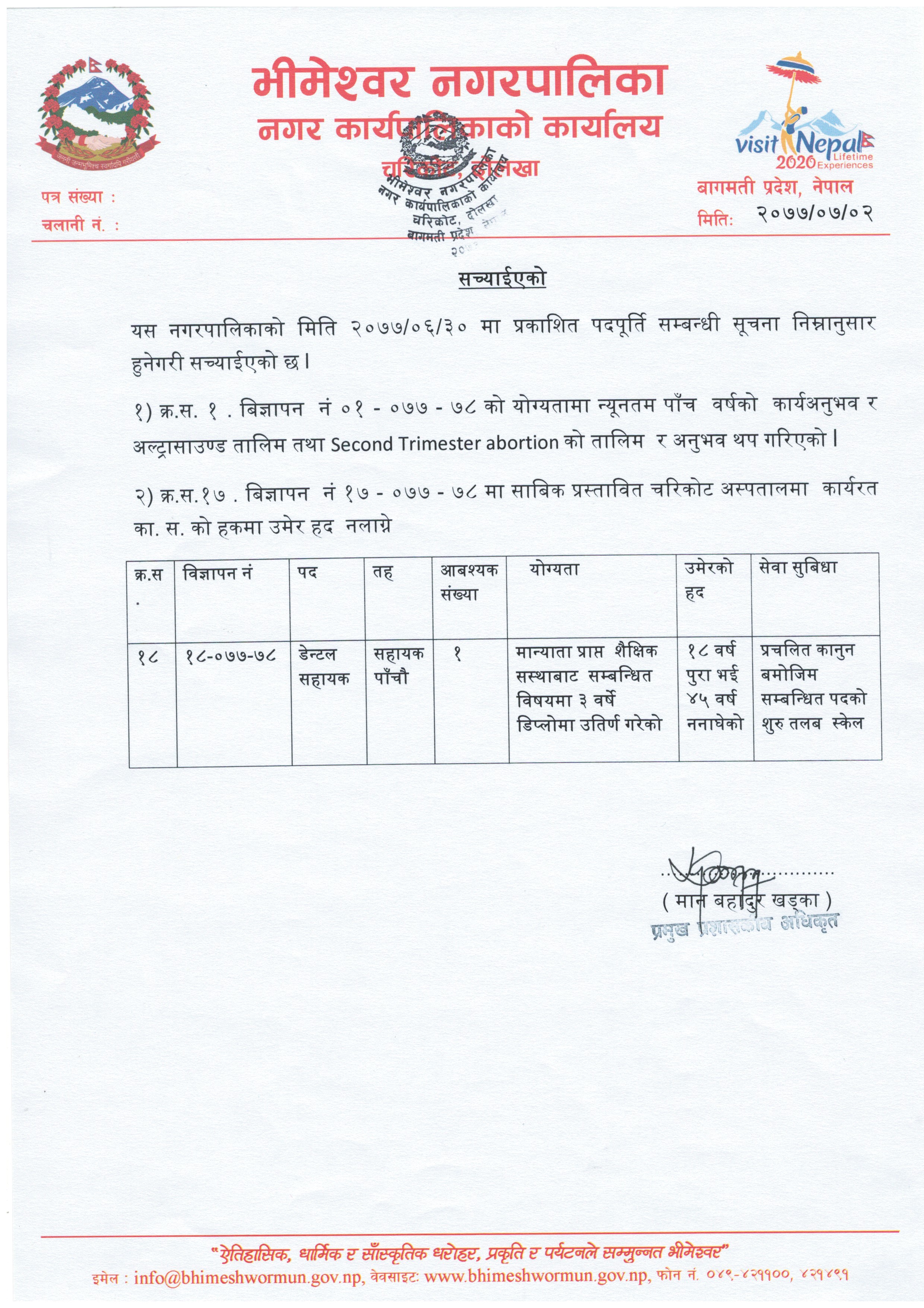 पदपूर्ति गर्ने सम्बन्धी २०७७/०६/३० मा प्रकाशित सूचना सच्याईएको बारे !!