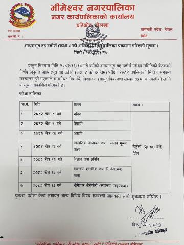 आधारभुत तह उतिर्ण (कक्षा ८ ) को अन्तिम परिक्षा तालिका प्रकाशन गरिएको सूचना