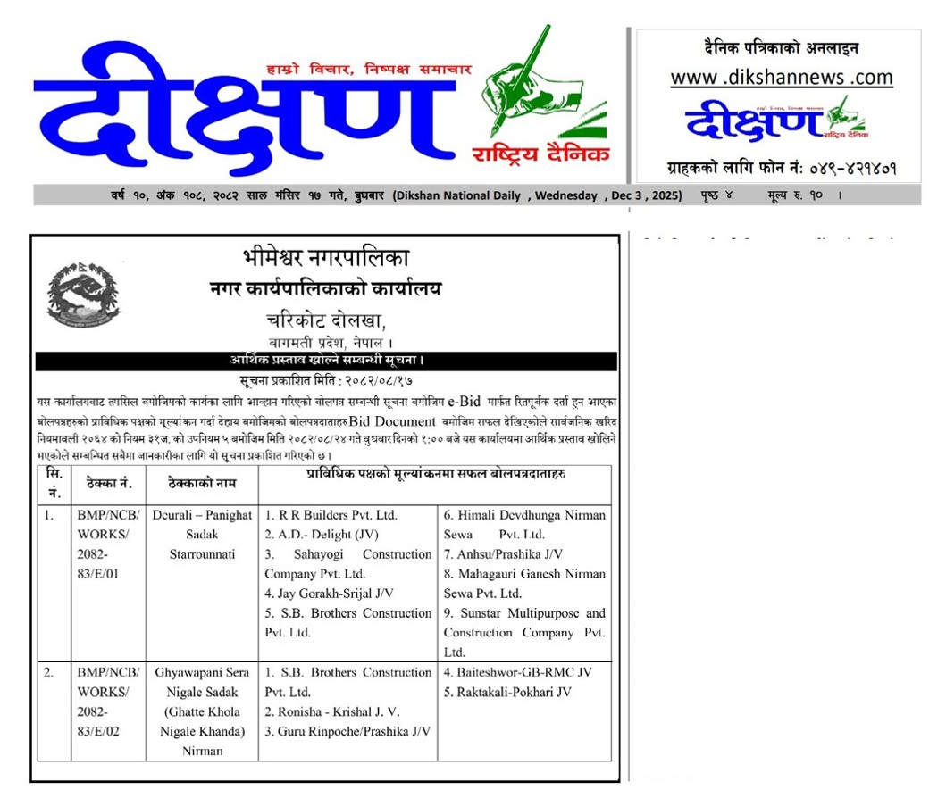 आर्थिक प्रस्ताव खोल्ने सम्बन्धि सूचना