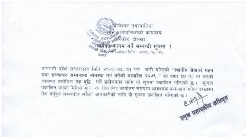» आवेदन कायम गर्ने सम्बन्धी सूचना |