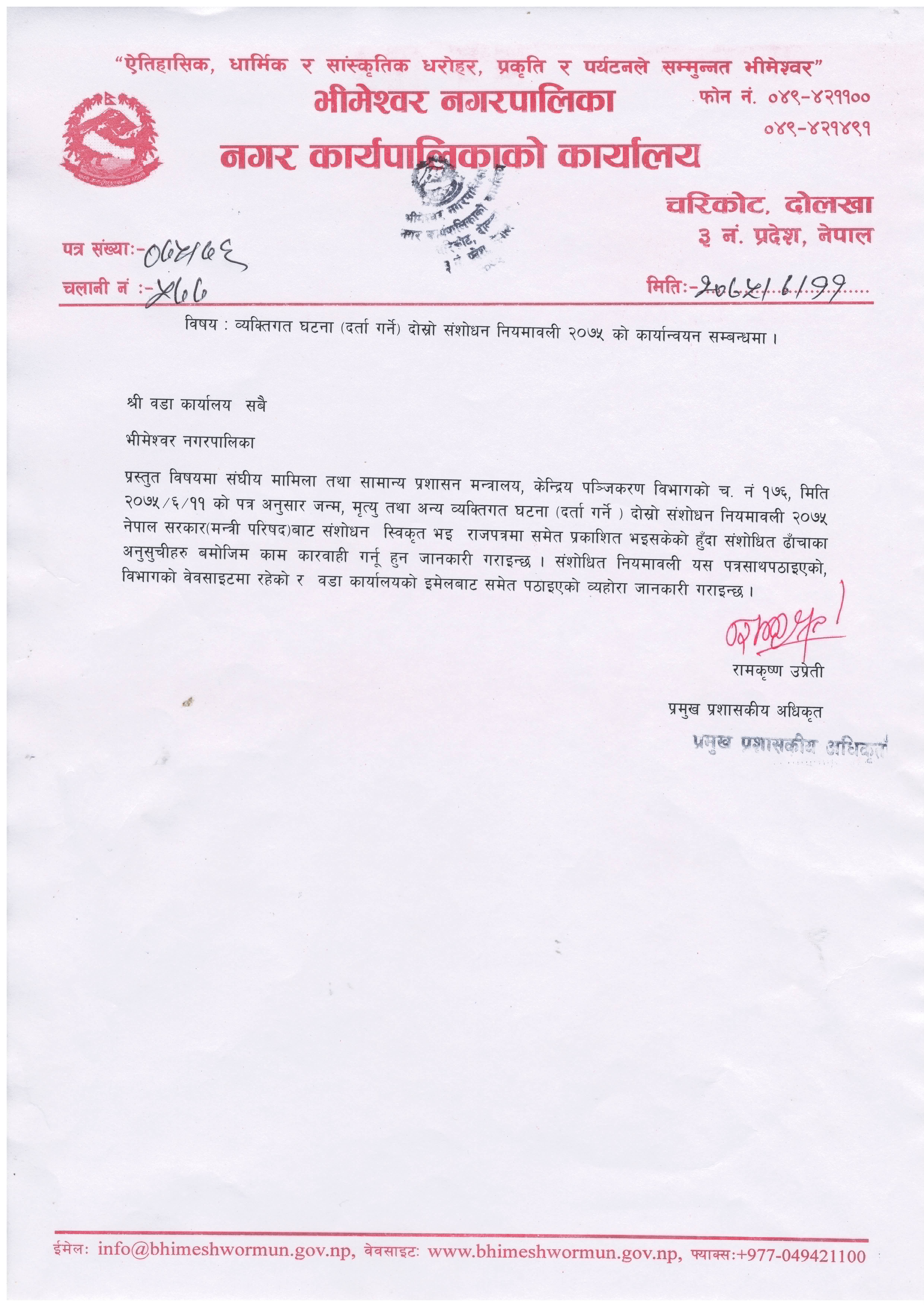 » व्यक्तिगत घटना दर्ता गर्ने दोस्रो संशोधन नियमावली २०७५ को कार्यन्वयन सम्बन्धमा
